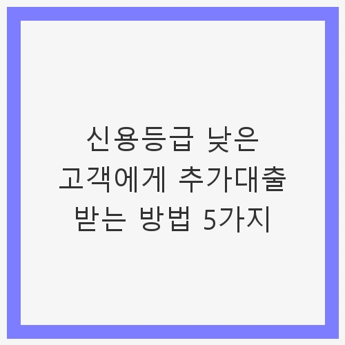 돈이 필요할 때, 특히 신용등급이 낮은 고객은 대출을 받는 것이 쉽지 않은 현실입니다. 그러나 다음과 같은 방법들을 통해 신용등급이 낮은 상태에서도 추가대출을 받을 수 있는 기회를 모색할 수 있습니다. 이번 글에서는 신용등급이 낮은 고객을 위한 5가지 추가대출 방법을 소개하려고 합니다. 이를 통해 대출에 대한 두려움을 줄이고, 재정적인 어려움을 극복하는 데 도움이 되고자 합니다.